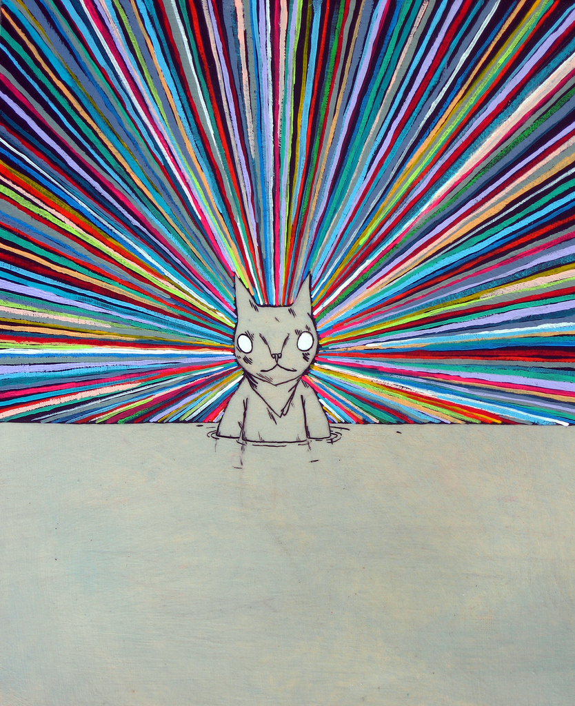 Californian artist has some wonderful pieces, all revolving around a cat-like creature that seems to fit all sorts of roles.