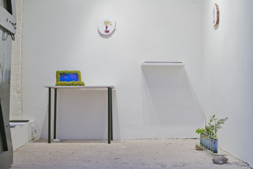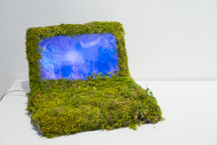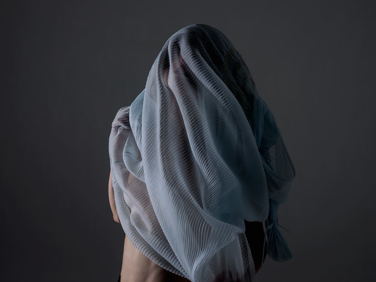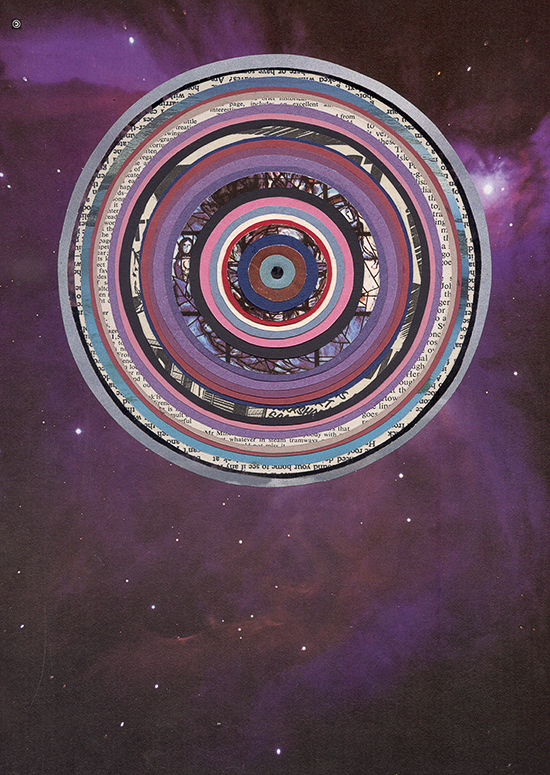 “The Method goes something like this. Imagine a square sheet of paper, and mark a dot somewhere on it and record its position. Fold the paper along a random axis, and watch where the dot ends up, recording this position. Repeat this thirty-two times. Use a weighted average of that list of points to determine the colour (or at least hue and brightness) of that original point. Now repeat, using the same folds, for as many points on the square as you like (say, several million). What I love about this is that despite the intensely tactile quality of the surfaces, these images have no “thing” to them: they’re visualisations of transformations of space – traces of topological history. This generative technique has lots of neat features. It’s resolution-independent (you can sample as many points as you like), the procedure is simple and compact (32 folds) and because it’s a sequence, it’s richly connected with image structure: the first fold is the most significant in controlling macro-structure, and the last fold influences the smallest level of detail. McCabe uses genetic algorithms to search and “optimise” the space of possible fold sequences / images.”[this quote relates to McCabe's exhibition , not these displayed artworks]